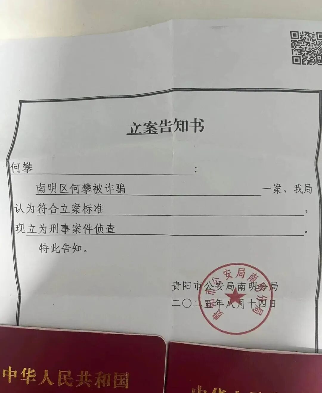 警方出具的立案告知书。(来源/受访者供图)涉事区域婚恋公司多达百余家多人称在此遭遇骗婚何攀将此事发到社交平台后,有20多人联系他,称有相似遭遇,且事发地均在贵阳市南明区。记者联系了其中几位当事人,他们称自己的遭遇与何攀类似,怀疑遭遇到了骗婚,但因各种原因有些未能立案且损失难以挽回。网友“全民反诈(韭菜保护局)”因揭露贵阳闪婚婚介骗局而得到不少被骗婚者关注。10月15日,他接受记者采访称,有当地知情人向他透露,据不完全统计,花果园一带有数百家婚恋公司,其中部分婚恋公司并未注册登记,被骗婚者不仅有男性,还有女性。目前,有超过30人遭遇骗婚后正在向他求助。据贵州广播电视台《百姓关注》栏目8月报道,江西一男子花了30多万元与相识4天的女子闪婚,婚后短时间内女子就多次跑回老家,今年1月离开后更是杳无音讯。男子到贵阳找婚介公司讨说法,发现女子回贵阳后又和其他男子相亲,收了彩礼,身上还有负债,后因诈骗被拘留。巧合的是,介绍江西这位男子闪婚的婚恋公司与介绍何攀成婚的婚恋公司为同一家。采访中,臻熙婚恋公司负责人应国红承认了此事。但他否认公司参与骗婚,辩称这与跟他们合作的团队有关系,与自己公司没有关系,公司只是提供平台服务,并不参与到具体婚恋介绍,那些团队负责婚恋介绍。应国红称,目前他们已与涉事合作团队解除了合作,法务团队也已在跟进处理。